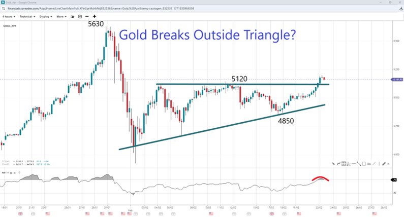 Gold’s move past $5,120 might have left behind an ascending triangle pattern, calling for a 13% upside if the measured-move projection played out from the breakout point. Resistance levels ahead of $5,820 sit at the round $5,250 and $5,500, as well as the prior record high of $5,630, followed by $5,750. On the flip side, if RSI momentum rotates and support breaks, prices could revert to the $5k handle, exposing $4,850.