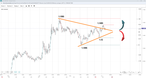 EURUSD Breaks Pennant Range