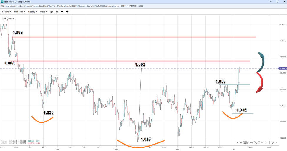 Meanwhile, . The Eurozone economy is fragile, with its largest economy, Germany, having witnessed two consecutive years of negative growth. It appears that lower interest rates, which typically support an economy, may not be as effective in mitigating the implications of a global trade war. Some analysts even warn that interest rates could rise during the year. In recent sessions, traders have been more risk-averse, selling stocks to buy bonds due to increasing concerns around tariffs, which weighed on the dollar and strengthened the Euro. If ECB President Christine Lagarde appears to side with the faction favouring a pause, the Euro could experience further upside. However, if the market does not fully price in a rate cut for the next meeting and the ECB strongly indicates continued easing, it could erase some recent gains in EURUSD.