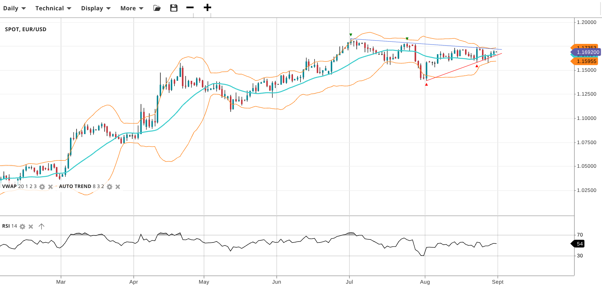 NOTE: These charts use the ‘Pro Trading Tools’ available on the SpreadEx trading platform. To use them, log in to your and click ‘Technical’ from the menu on any chart.