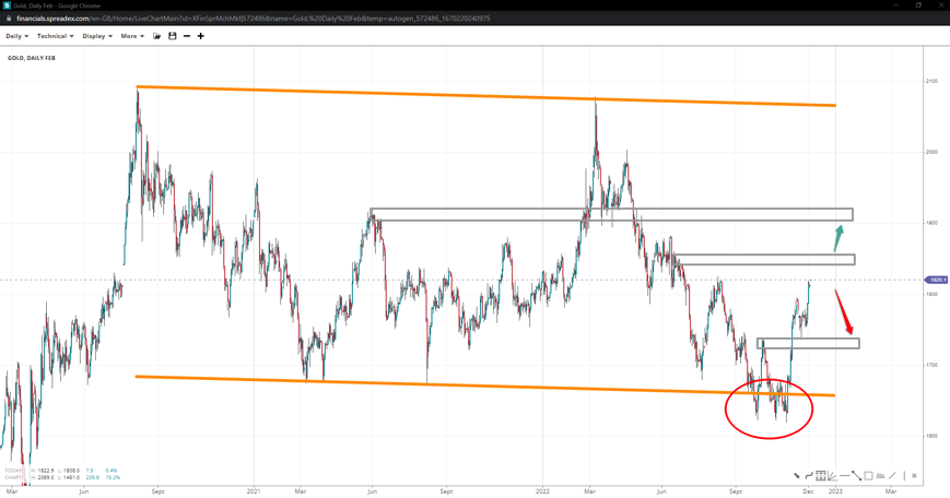 Gold might be trading within a descending channel, and medium-term price action could see a move towards the 2k handle if 1900 gives in. In the short term, prices face a double top resistance near 1825, with a break above looking at 1860 next. Weakened momentum might see a revisit of the 1740 support.