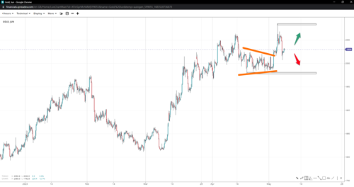 Russell 2000 has been trending lower but reached consolidation around 1700, forming a triple-bottom. If bulls take over 1800, a bullish breakout towards 1870 may be seen. Conversely, if the support breaks, increasing shorts could drive prices toward 1650.