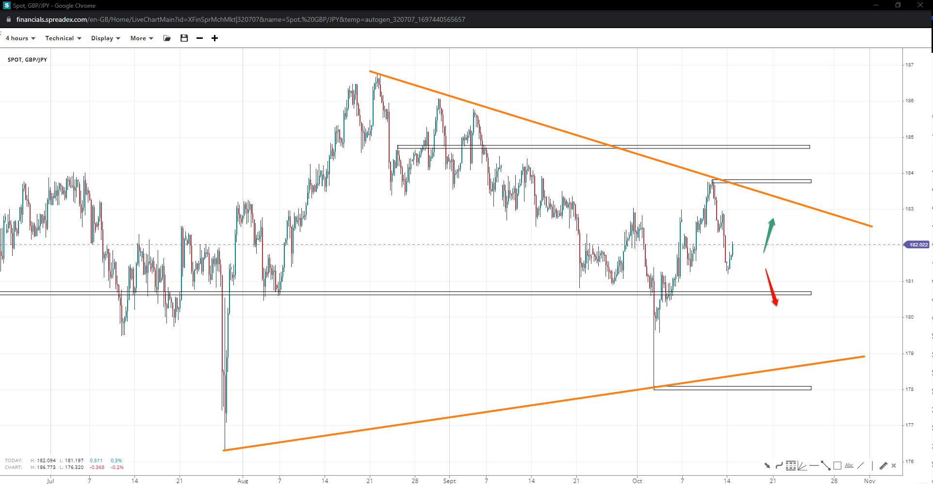 Despite trading bullishly in the short term, GBP/JPY remains at risk of prolonged consolidations having printed higher lows and lower highs, resembling a triangle. Losing the closeby levels at either ¥180.65 or ¥183.85 to extend to  ¥184.70 will unlikely shift chances, but the break of the ¥185 might do.