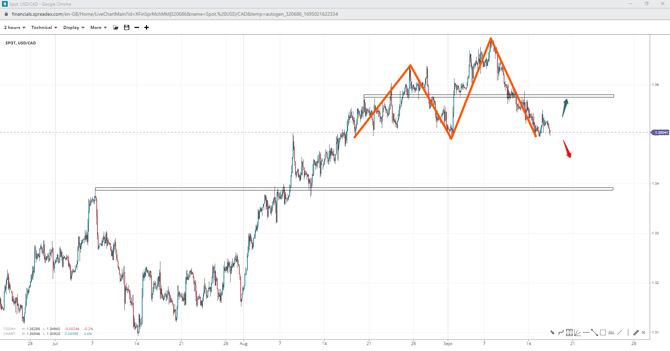 A head and shoulders pattern may be under formation on USD/CAD, with support at $1.35 expected to send prices to $1.3640 to complete the right shoulder. If the triple bottom succumbs, bears have major support slightly under $1.34, invalidating the idea. Surging past $1.3570 will increase the probability of completing the right shoulder, whereas faltering near $1.3580 will keep uncertainty elevated.