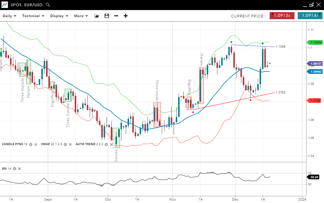 • The support level is quite near at 1.0708, indicating potential for a strong base, while resistance is at 1.1032.