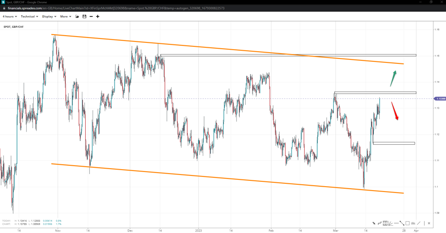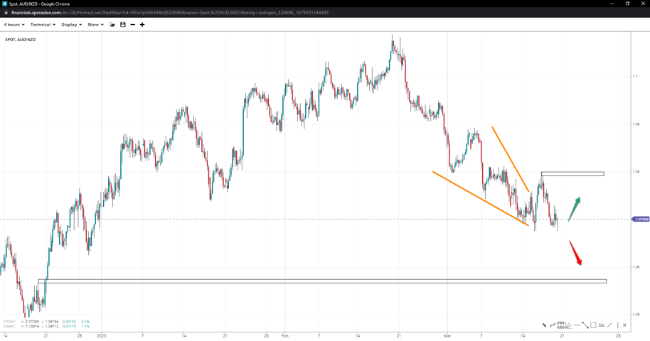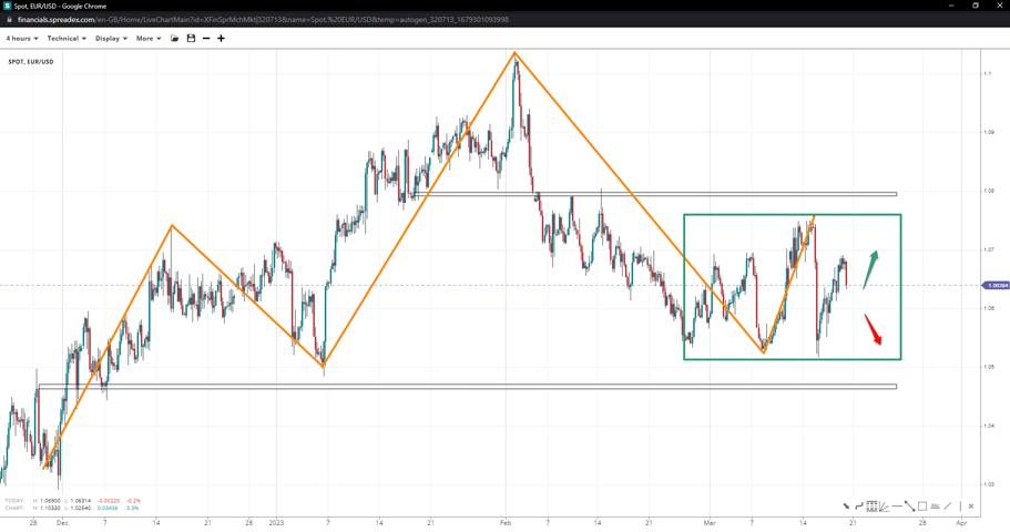 Although EUR/USD potential H&S remains intact, the pair also turns sideways between $1.074 and $1.054. Without control of $1.07, bearish price action might see the pair slide towards the bottom end and text fresh lows mid $1.04s. Rising above the strong resistance might open the door to $1.08.