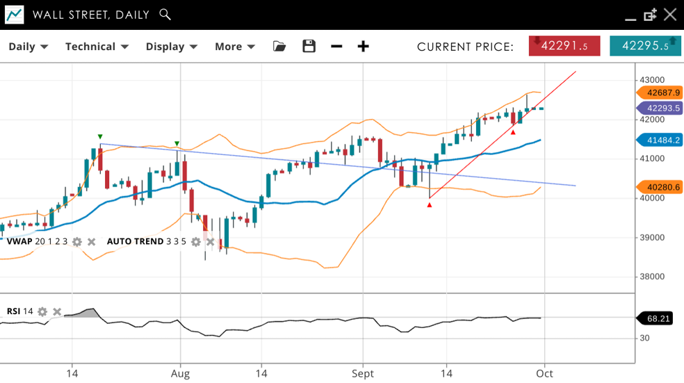 | Wall Street | Bullish | Impulsive | 42293 | 41484 | 40280 | 42687 | 68 |