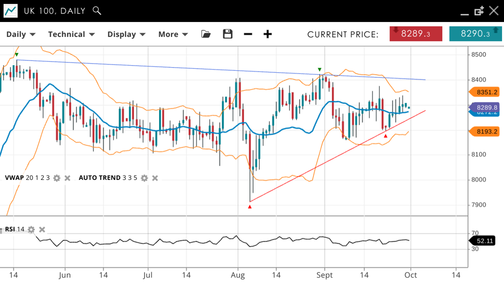 | UK 100 | Neutral | Consolidation | 8289 | 8272 | 8193 | 8351 | 52 |