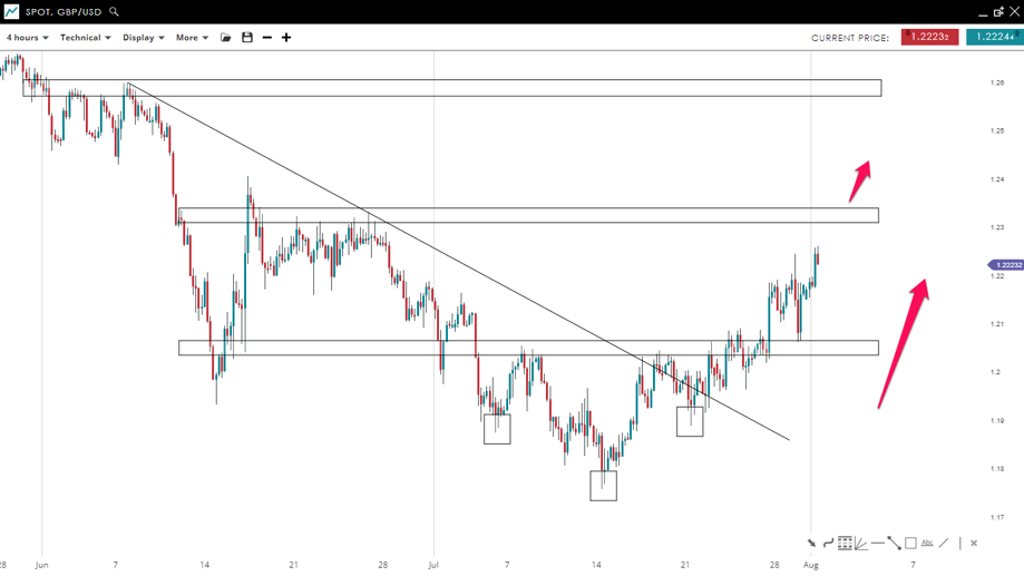 The price of GBP/USD successfully broke above the bearish trend line after posting an inverse head and shoulders. The price currently is posting higher highs and lows signalling a change in direction to the upside. A close above the 1.23 mark could lead to a further movement to the upside toward the 1.25 mark. Otherwise if the Pound fails to break the 1.23 mark, it could take the price back to the 1.20 level.